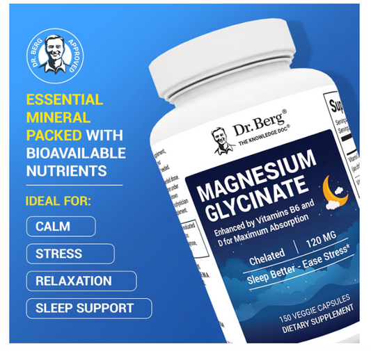 Dr. Berg Magnesium Glycinate with Vitamin D B6 & Zinc - 150 Capsules