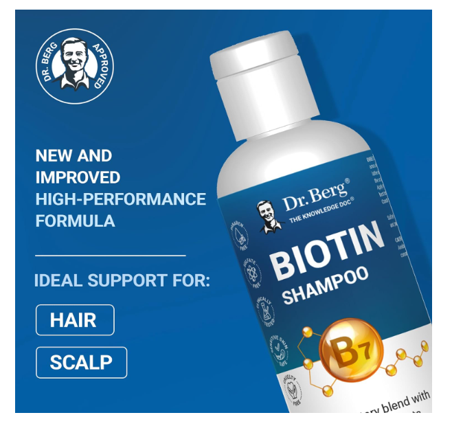 We reformulated Dr. Berg Biotin Shampoo with new and healthy ingredients, so you don’t have to worry about damaging your locks. Each wash will help your hair look silkier, smoother, and more nourished than ever.