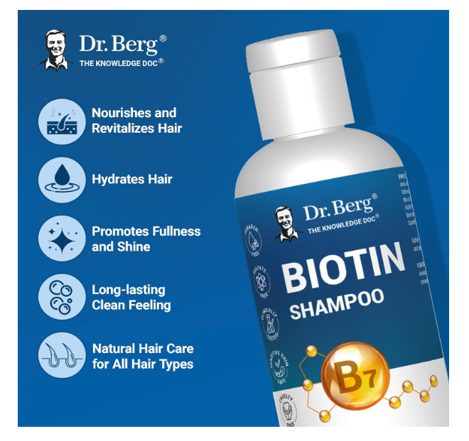 Does your hair tangle quickly, feel dry and difficult to manage, or show signs of heat and color damage? Dr. Berg Biotin Shampoo is an advanced hair care solution that hydrates and nourishes all hair types.