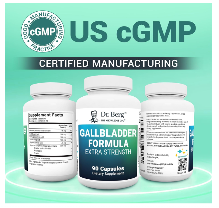 Many digestive support supplements contain low-quality ingredients that lack potency. That’s why Dr. Berg Gallbladder Formula Extra Strength contains a unique blend of powerful digestive enzymes, purified bile salts, and digestive herbs.