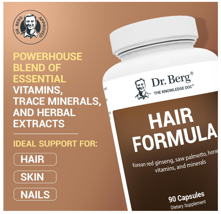 Dr. Berg Hair Formula contains 13 premium wellness ingredients: