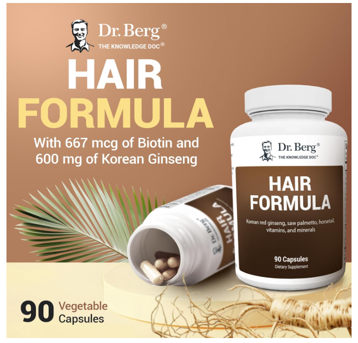 Each serving of Dr. Berg Hair Formula delivers a daily dose of 666 mcg of biotin, 200 mg of horsetail herb powder, and 600 mg of Korean ginseng powder. Our advanced formula is enhanced with vitamin D3 and naturally derived vitamin C from acerola cherries.