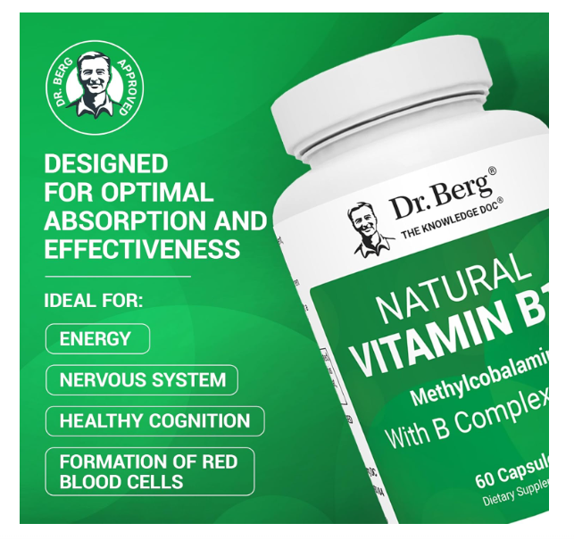 Dr. Berg Natural B12 is enriched with magnesium and a whole-food-sourced B-complex blend to optimize absorption, offering comprehensive support for sustained energy and overall vitality.