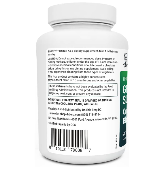 Dr. Berg Organic Greens Superfood - Cruciferous Blend - 90 Capsules