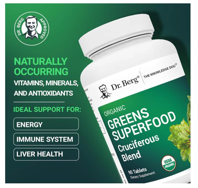 Dr. Berg Organic Greens Superfood is an exclusive formula made with high-quality ingredients to enhance a healthy diet. Each serving delivers an incredible 450 mg of our exclusive high-potency cruciferous blend made from premium-quality superfoods.